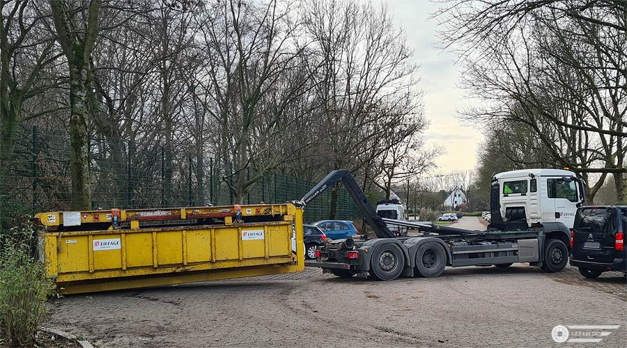 | Parkplatz Freibad Ratingen. Angeliefert wird in einer Mulde 1] D-ERD 99 80 9550 016-6 Gleisarbeitswagenanhänger A.P.E.L. T5025 (A-P.E.L. Gleisbautechnik Rheine) Fabrik Nummer T00185 Deutet auf Gleisbauarbeiten nahe des Übergangs Junkernbuschweg hin, da bereits am 11.12.2025 eine Begehung durch Mitarbeiter der DB zwischen km 0,8 und 1,1 stattfand. Wird die geplanten Sonderfahrten der Railflex mit 38 2267 am 13.12.2025 wohl nicht beeinflussen. 1]Die später auf den Anhänger gestellt werden kann. |