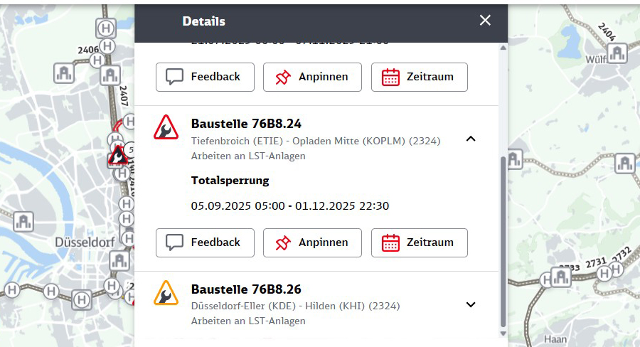 Zustand der "Baumassnahme" links Blick Richtung Ratingen West / rechts Blick Richtung Düsseldorf-Rath . Seit Juli 2025 wird dort wohl nicht mehr gebaut. RP vom 17.07.2025 Felderhof-Projekt: Bremer Bauträger in Finanznot Die Interhomes AG mit Hauptsitz in Bremen hat einen Antrag auf Eröffnung eines Insolvenzverfahrens gestellt. Quelle: https://rp-online.de/nrw/staedte/ratingen/felderhof-projekt-bautraeger-in-finanzieller-schieflage_aid-13116644 |