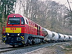 26.10.2011-16:07Uhr Lok 9 der Neusser Eisenbahn mit Kalk in Flandersbach |