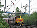 | 23.09.2011-12:54Uhr 225 027 mit Kalkzug für Beverwijk im Gleisbogen am Abzw.Anger |