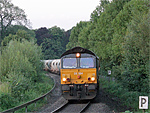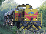 | 07.10.2013-12:37Uhr ThyssenKrupp Lok 543 mit Kalkzug bei km 3,8 |