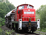 | 8.August 2013 - heute Mittag fand noch eine Begehung des betroffenen Abschnitts (ca. km 6,4 bis 7,0) durch Mitarbeiter der DB statt. Der Bergisch-Rheinische Wasserverband war ebenfalls mit zwei Mitarbeitern vertreten. Gegen 14:20h endete die Begehung. Auslöser für die Streckensperrung waren wohl Überspülungen an mehreren Stellen im oben erwähnten Bereich. Steine, Schlamm und Holz hatten sich besonders nahe eines Wasserdurchlaufs auf der Strecke abgelagert. Auf dem Weg vom Hang zum Talgrund hatte sich das Wasser einen anderen Weg wie vorgesehen gesucht. Nachdem es einen Wanderweg unterspült hatte, landete alles, was mitgerissen wurde, auf und neben dem Gleis. Natürlich ist dies nicht zu vergleichen mit Überschwemmungen der letzten Zeit in Deutschland. Anderseits eine Sperrung einer Strecke, auf der das Ladegut praktisch Just in Time vom Lieferanten zum Kunden gebracht wird und es keine Ausweichstrecke gibt, führte wohl zu ziemlicher Hektik bei allen Beteiligten, ob DB, Rheinkalk oder den beteiligten Privatbahnen. Die Streckensperrung wurde aufgehoben. |