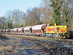 | Am 1.Februar 2014 tauchte dann erstmals eine DB-Gravita auf der Angertalbahn auf. Die Baureihe 265 hat die Nachfolge von "Beci" und "Tilly" respektive TX Logistik-Mietloks angetreten. Die Aufnahme stammt vom 2.Februar 2014 (siehe auch >>KLICK) | |