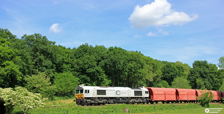 | 08.11.2014-14:25Uhr RheinCargo DE803 mit Leerwagen auf dem Weg nach Rohdenhaus |