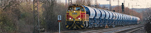| RheinCargo fährt Kalksteinmehlzüge zu den RWE Rheinbraun Kraftwerken im rheinischen Braunkohlenrevier |