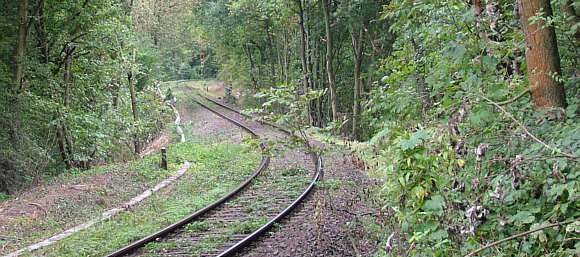 Kurz dahinter befindet sich der einzige „Tunnel“ der Angertalbahn, die Unterführung unter