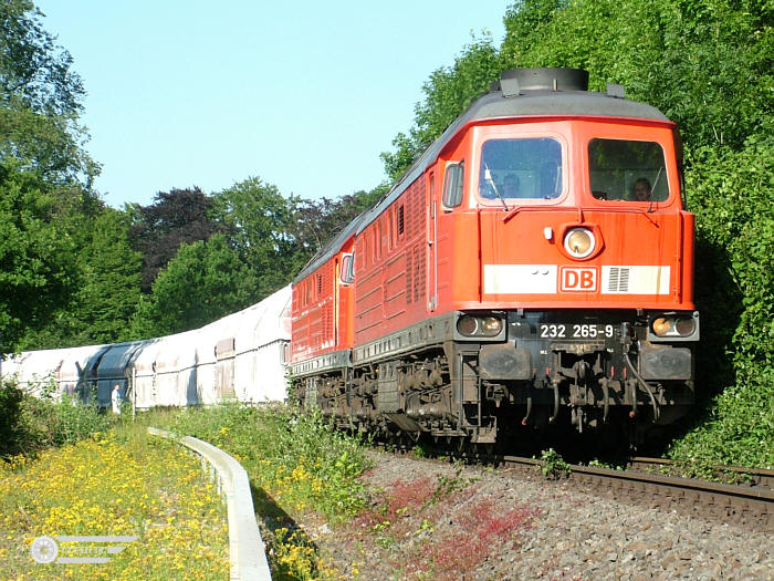 232 265 (und im Schlepp 232 308) am 3.Juli 2006 kurz hinter dem Übergang nahe "Haus zum Haus".