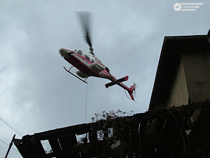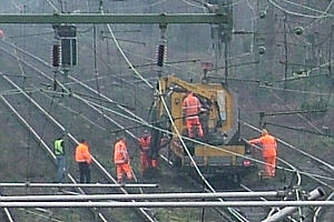 | Nachdem bereits am 17.02.2006 ab Duisburg Wedau mit dem Aufstellen neuer Signalmasten begonnen wurde, kam am 18.02.2006 Lintorf an die Reihe. Im Einsatz war ein Huschrauber der Teuto Air, Bielefeld. Aufnahme links: Aufstellung eines Signals am Bahnhof Lintorf -Fahrtrichtung Duisburg- und rechts der Hubschrauber mit der Kennung D-HTEN über dem alten Bahnhofsgebäude. Während des Einsatzes waren nur kurze Zugpausen notwendig. Link zu weiteren Aufnahmen auf einer separaten Seite |