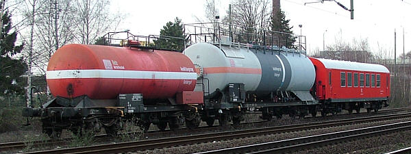 | 21. März 2006 Der Ausbildungszug Gefahrgut der DB Netz Notfalltechnik steht in Ratingen West. Vom 21. bis zum 23. März 2006 wurden dort mehrere Fortbildungsmassnahmen der Ratinger Feuerwehr durchgeführt |