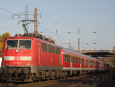 | Oben gegen 11:55 Uhr RE 3 auf dem Weg nach Dortmund Schub 111 119