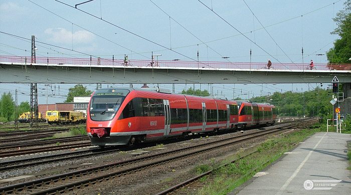 Gegen 14:50 Uhr - Doppeleinheit geführt von 643 053 kurz vor dem Bahnübergang Sandstrasse in Ratingen