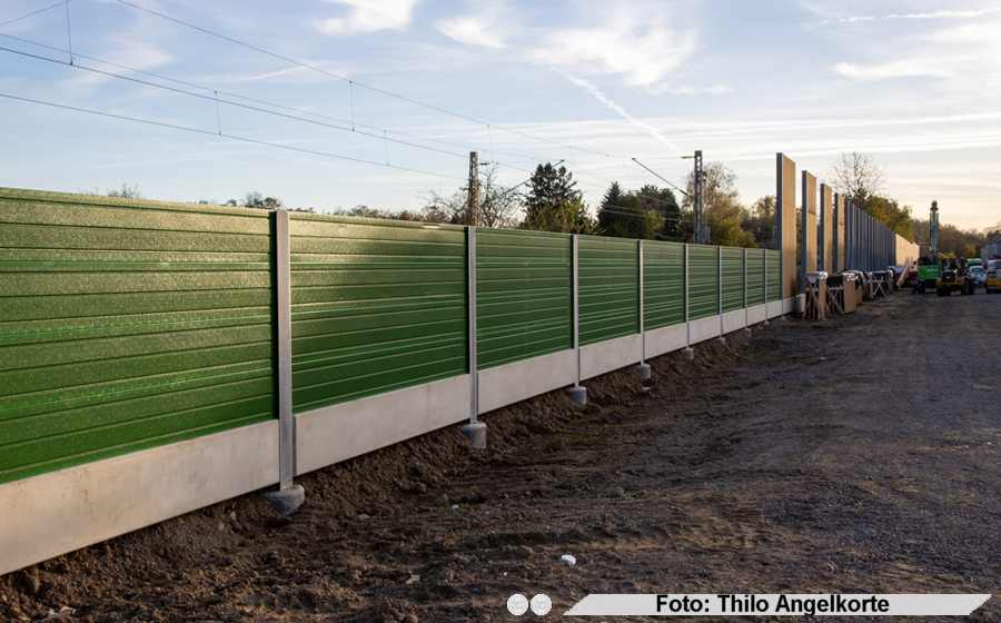 | Ständerwerk für die hohen und die niedrigen Schallschutzwände sind erstellt. | |