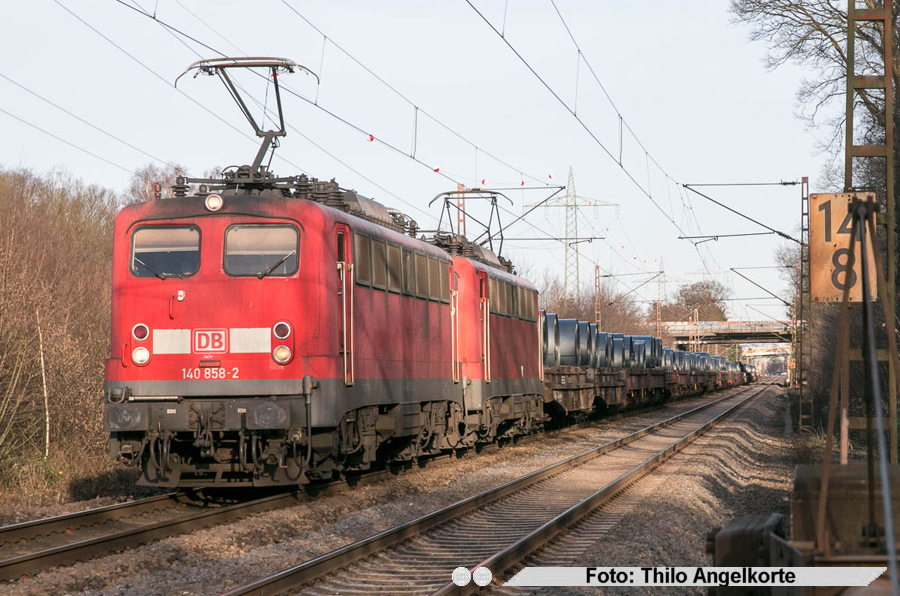 | 7.Januar 2014 - 140 858 und 140 861 mit Coilzug zwischen Lintorf und Tiefenbroich | |||