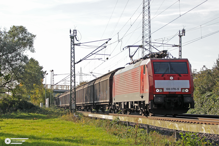189 078 am 19.Oktober 2013 gegen 10:45 Uhr durch Lintorf. Am Nachmittag erlitt die Lok Nahe Emmerich einen Brandschaden
