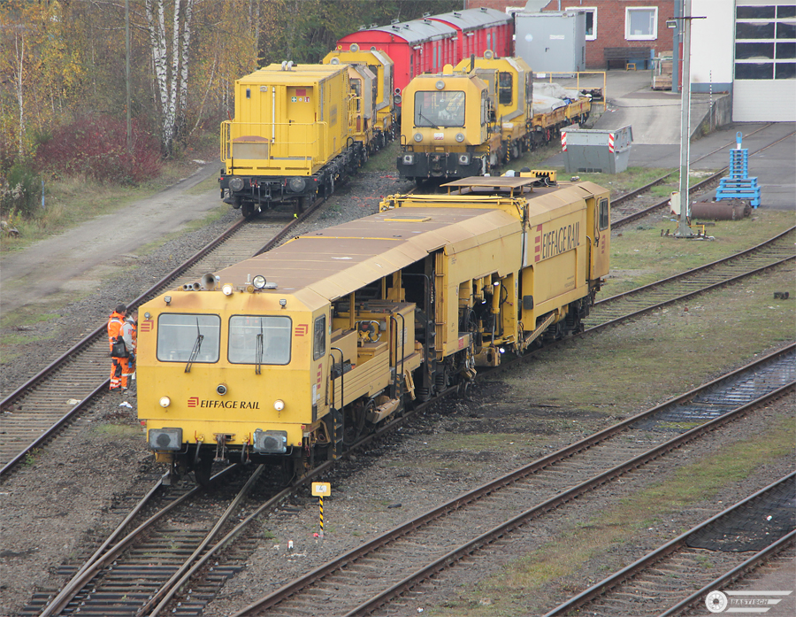 11.November 2021 - Überblick über die abgestellten Fahrzeuge. Unter anderem 782 001 (>>KLICK) / 203 310 (>>KLICK) und arbeitend EIFFAGE RAIL 99 80 9424 009-5 D-ERD (>>KLICK)