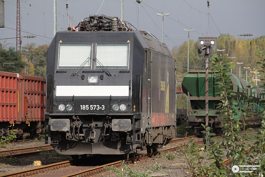| 05.07.2014 -Düsseldorf-Rath Durchfahrend 185 292 und abgestellt E 37 514 sowie E 37 517 und CAPTRAIN V156 |