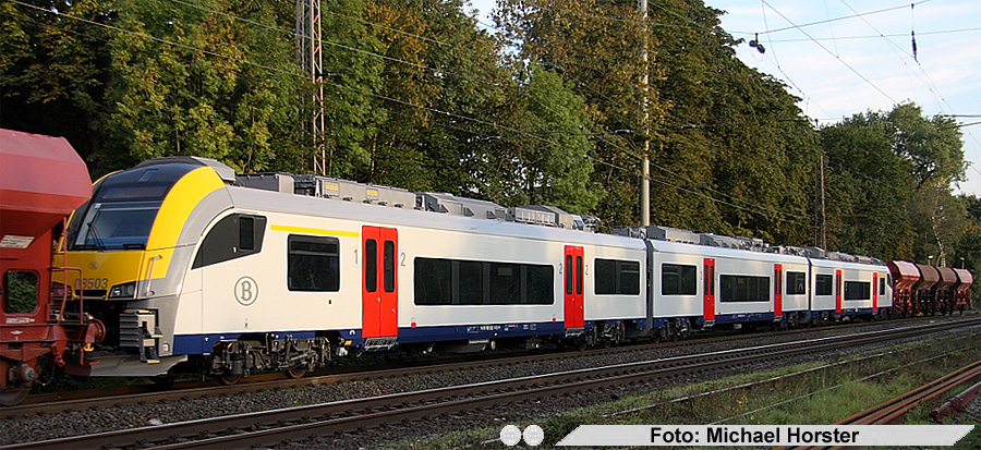 | 29. September 2010 - gezogen von V 107 der Rurtalbahn - Triebwagen 08503 der SNCB (Desiro ML Baureihe AM85) Quelle eurailpress.de | ||