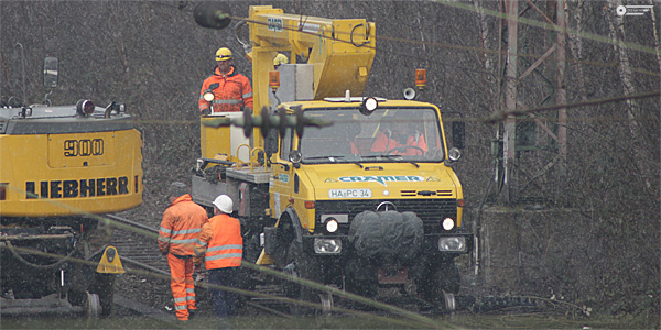 | Nach der Totalsperrung von Karfreitag bis über Ostern, die allerdings für den Kalkverkehr nur zweieinhalb Tage betrug, war die Strecke am darauffolgenden Wochenende wiederum vollständig (mit Ausnahme des Kalkverkehrs) gesperrt. Neben den Oberleitungsarbeiten in Lintorf, fanden auch Oberleitungsarbeiten in Düsseldorf-Rath statt. | |||||