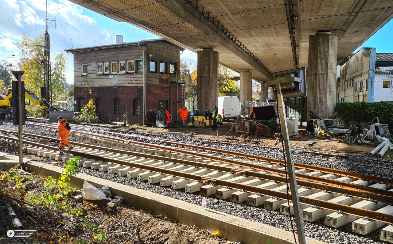 | Richtungsgleis Düsseldorf - Schwellen liegen | |