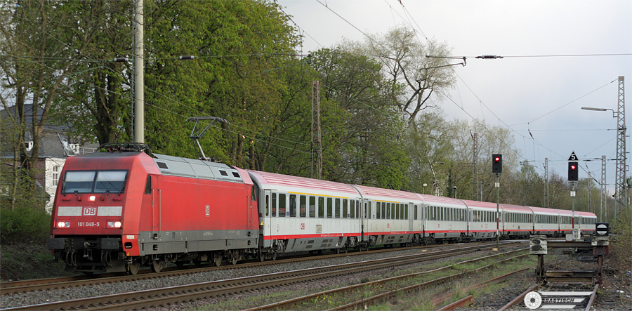 19:49 Uhr - 101 040 zieht mit ihrem Zug durch Lintorf Richtung Süden