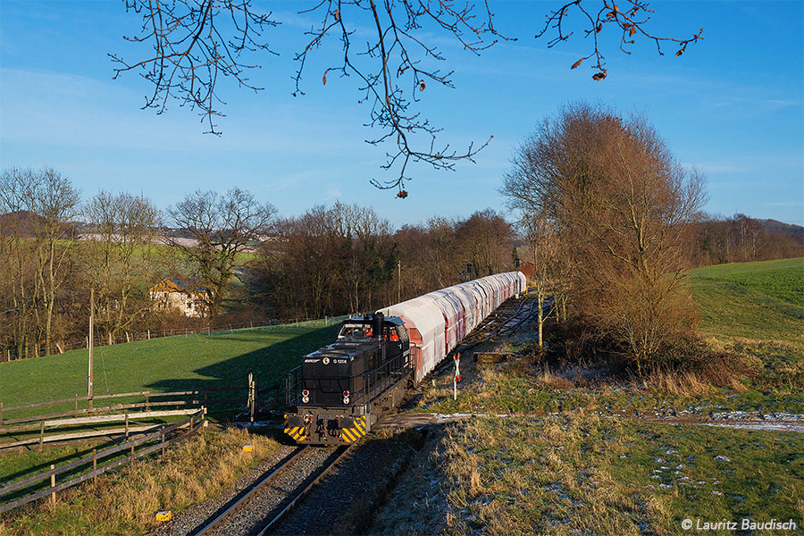 18.01.2016 - MVG 275 007 mit dem ersten Kalkzug auf dem Weg nach Duisburg-Wedau. Das bedeutet wahrscheinlich