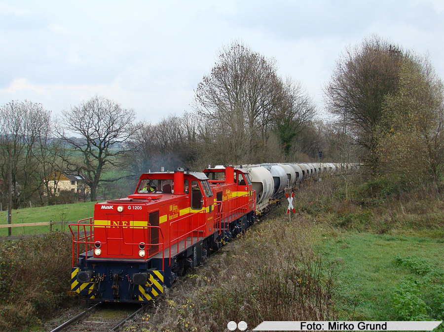 Meine persönlich erste Sichtung eines Kalkzuges mit zwei Lokomotiven der Neusser Eisenbahn. Für einen