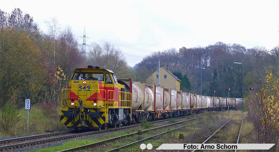 11:57 Uhr - Lok VI und VIII der Neusser Eisenbahn bei der Einfahrt in Flandersbach