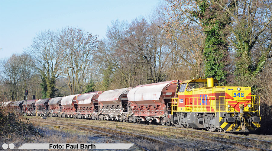 10:09 Uhr ThyssenKrupp Lok 548 mit leeren Tads - Einfahrt Flandersbach