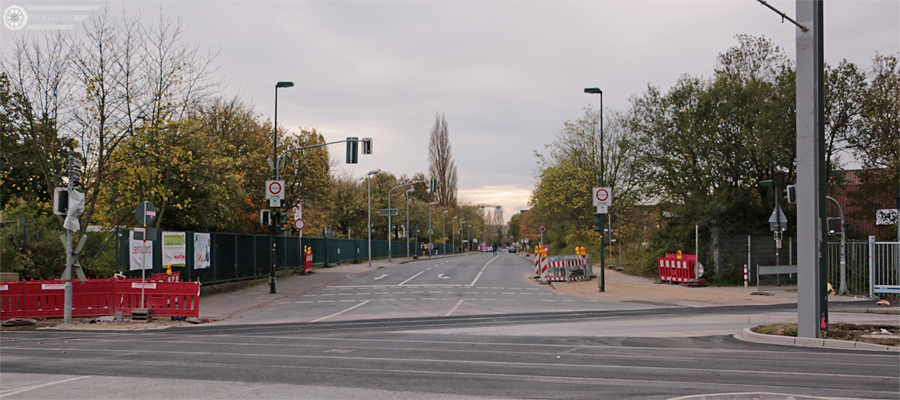 Blick von der zukünftigen Haltestelle Wahlerstrasse auf die zur Zeit gesperrte Kreuzung